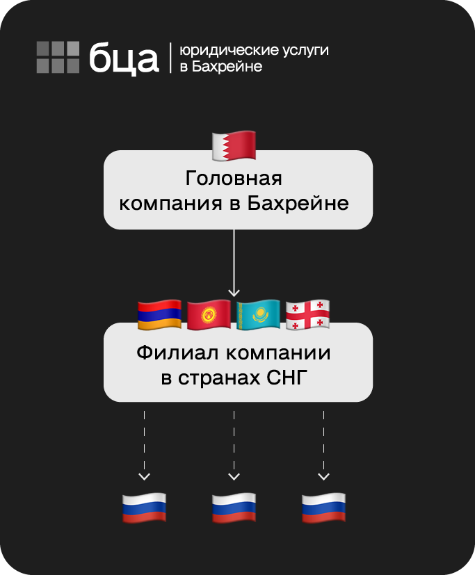 Банки Бахрейна открывают мультивалютные счета в евро, долларах, фунтах и других валютах, но на сегодняшний день не принимают рубли, в связи с чем финансирование и репатриация денежных средств возможны с использованием несанкционных банков или двухфакторной структуры с внедрением промежуточного элемента, позволяющего осуществлять платежи в рублях. Для данных целей мы помогаем учредить филиал бахрейнской компании в одной из стран СНГ, выбор которой зависит от вида экономической деятельности и общего профайла головной компании.
